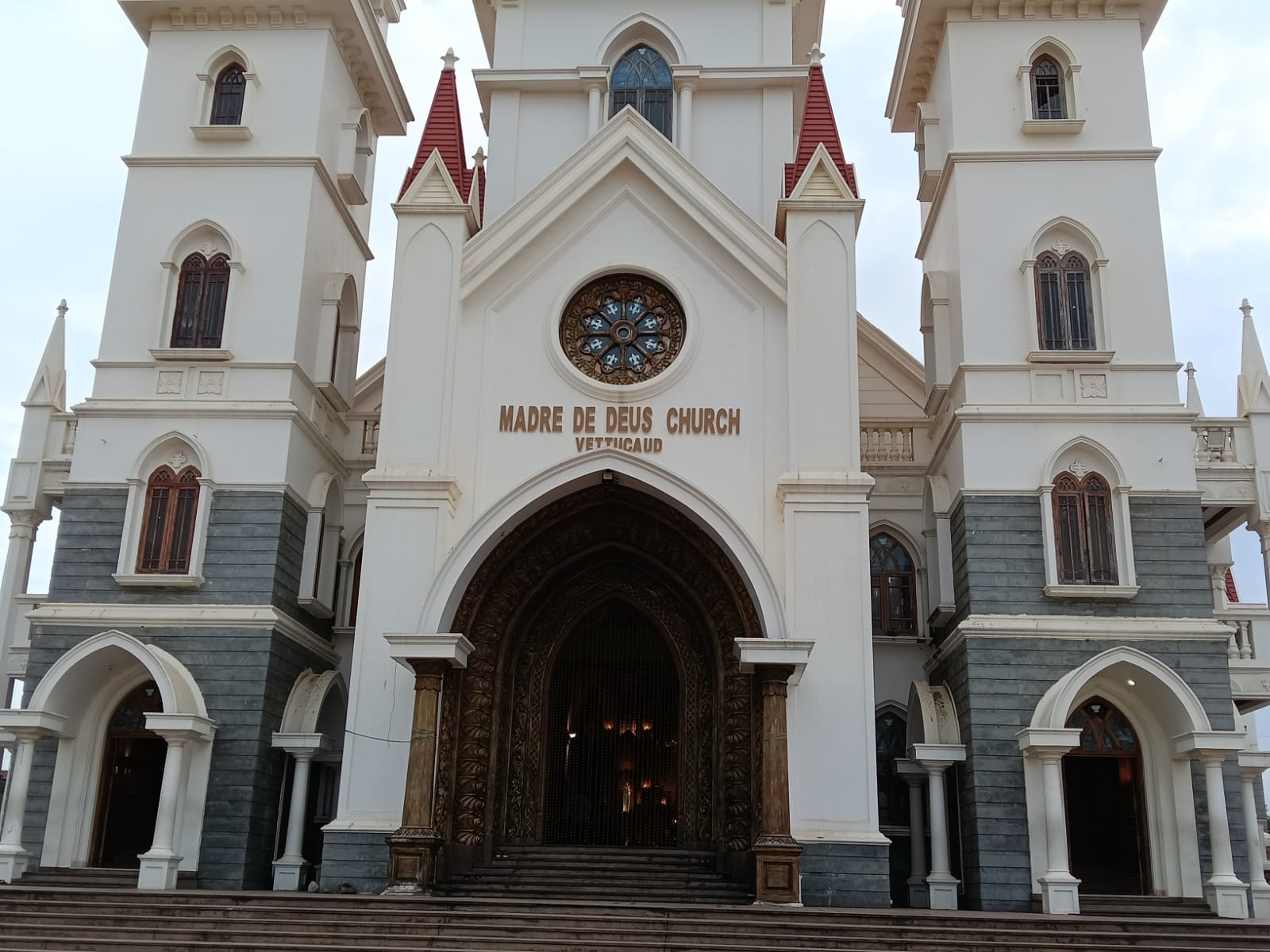 തിരുവനന്തപുരം അന്താരാഷ്ട്ര വിമാനത്താവളത്തിൽ നിന്ന് ഏകദേശം രണ്ടര കിലോമീറ്റർ അകലെയായി സ്ഥിതിചെയ്യുന്ന വെട്ടുകാട് പള്ളി (മാദ്രെ ദെ ദേവൂസ് ദേവാലയം) തിരുവനന്തപുരം ലത്തീൻ അതിരൂപതയിലെ പ്രധാന ക്രൈസ്തവ തീർത്ഥാടനകേന്ദ്രങ്ങളിലൊന്നാണ്. പള്ളി തിരുവന്തപുരത്തെ കടലോരപ്രദേശമായ വെട്ടുകാട്ടിലാണ് സ്ഥിതിചെയ്യുന്നത്. സമുദ്രത്തിന്റെ ശാന്തതയും ആത്മീയതയുമൊന്നിക്കുന്ന ഈ പ്രദേശം ഭക്തർക്കു ആത്മീയമായ ശാന്തിയും പ്രചോദനവും നൽകുന്നു.